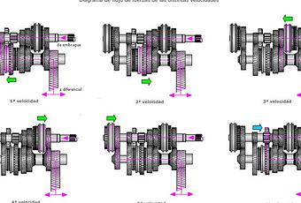La caja de cambios de un vehículo, tenga 4 o tenga 7 velocidades, tienen dos ejes, un primario, que va encajado en el embrague, el encargado de transmitir el movimiento del motor, y un secundario, que le da el movimiento al diferencial, encargado de transmitir el movimiento a las ruedas motrices.