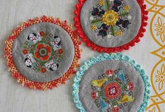 Bordado y ganchillo en estos tapetes de Twin Fibers.