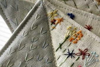Embroidered linen coasters by Rose Waterrose.