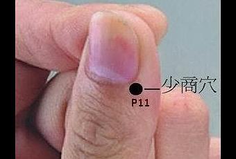 P11, es el último punto del canal de energía del pulmón. Su nombre es SHAOSHANG 少商, que significa algo así como, Joven Mercader. Pertenece al grupo de puntos fantasmas; serie de puntos que servían antiguamente para tratar las enfermedades mentales, los trastornos maniaco depresivos y la epilepsia