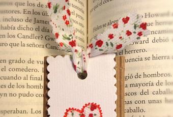 Mañana es San Jordi. Cenaremos en familia para celebrar el santo de mi marido y ayer domingo por la tarde estuve preparando unos puntos de libro para regalar durante la cena. Cartulina color kraft corarrugada, cartulina blanca grabada, tijeras de pespunte, tela con rositas, troquel... y un poquito tiempo (poquito...porque siempre voy corriendo)... No os tomará mucho rato hacerlos. ----- Tomorrow is St. Jordi's day. We are going to dinner together to celebrate my husby's onomastics and yesterday in the afternoon I was crafting to make these booksmarks to give away. Kraft colored corrugated cardboard, white cardboard, scisors to cut wavy shaped, roses printed fabric, a punch and a little time (I'm always in a hurry)... It won't take you too much time to do them.