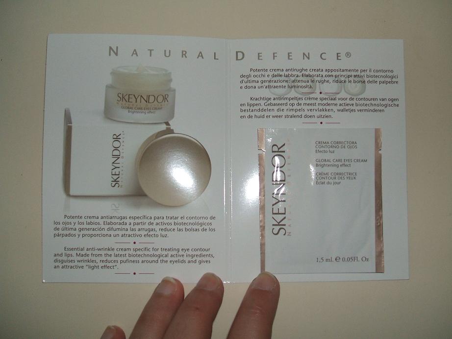 Otra muestra que he probado ha sido la de la marca Skeyndor, una marca natural de gran calidad. La muestra que he probado ha sido una crema correctora para el contorno de ojos. Es una crema con una textura cremosita pero que se absorve muy bien. Deja una sensación de confort en esta zona. Además la crema ayuda a eliminar las arrugas, reduce las bolsas de los párpados y proporciona un efecto luminoso a la mirada.