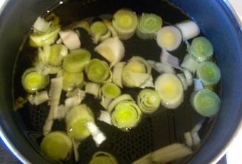 *Lo primero que haremos sera poner en una cazuela agua ( hasta la mitad) con un chorrito de aceite,la pastilla de Avecrem y sal.