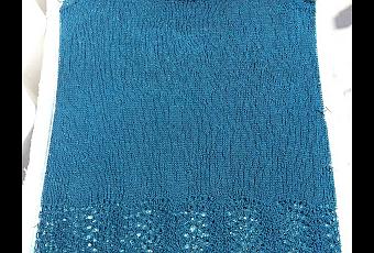 Como ven es muy sencilla, tejida en círculo desde abajo y hasta la axila, con algunos detalles sencillos en el hueco de la manga y un calado muy simple en el borde inferior.