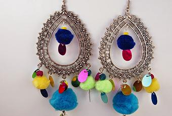 Los pompones y las lentejuelas multicolor, en texturas mate y brillo, aportan un aire hindú y las filigranas de metal plateado son la base que aporta el estilo tribal.Se agitan estos elementos y se espolvorea un poco de espíritu relajado y bohemio. Se sirve con un fular alrededor del cuello y un bolso de asa larga colgando del hombro... y ya está, he aquí el perfecto complemento para un look boho chic.