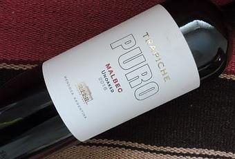 Para comenzar me quedé con una propuesta de bodega Trapiche que me pareció muy interesante. TRAPICHE PURO Malbec 2016. La idea es comparar en una misma cosecha, de una misma región y mismo viñedo, dos vinificaciones diferentes. El PURO es solo malbec del Valle de Uco, fermentado y criado durante 10 meses sobre sus propias lías en cubas de cemento. Una leve estiba previa a su salida al mercado y un precio que al cambio con el euro (aproximadamente 1€ = $32, evitaré hablar de política) me pareció muy barato, quedando casi a 7€ (una bicoca).