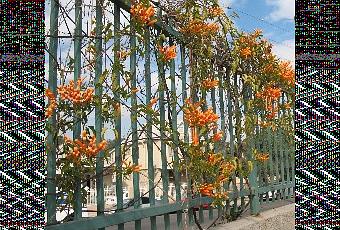 En plena floración las abundantes flores anaranjadas, parecen guirnaldas colgantes.