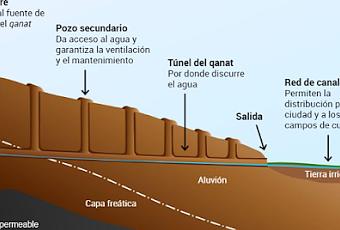 En Irán, donde aún siguen funcionando 37.000 de estas estructuras, el más largo es el zarch qanat, de 80 kilometros de longitud, construido hace 1500 años. Y el pozo vertical más profundo llega a los 300 metros.