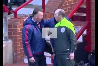 En el partido disputado entre el Manchester United y el Arsenal hubo una escena que se robo todas las miradas, y fue la actuacion de Louis Van Gaal simulando como un jugador del arsenal se desplomaba en el area del United.