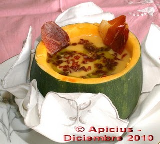 Apicius, de la Cocina paso a paso, ha preparado una crema de calabaza melón, presentada en la propia calabaza.
