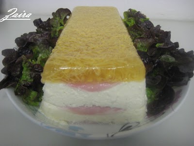 Pilar, desde la Cocina de Zaira, ha enviado esta Terrina de Mousse de Queso, jamón y gelatina de huevo hilado.