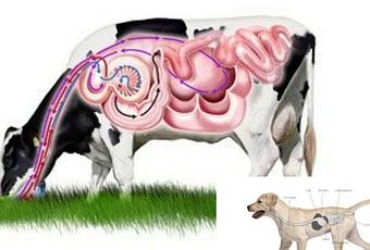 Puede parecer extraño, pero si se observa el aparato digestivo canino, desde la boca, cuya función es solamente cortar y tragar, hasta su limitado estómago y reducido sistema de glándulas, necesita que alguien acondicione los alimentos antes de consumirlos. Entonces, ¿Quién procesa los alimentos que comen los perros? Las presas. Son ellas las que tiene una boca con movimiento lateral y muelas con meseta para formar bolo alimenticio. Tienen cuatro estómagos para distintos procesos de los nutrientes. Pueden cortar con la amilasa y otras enzimas las cadenas largas de polisacáridos y convertirlas en azúcares simples. Es por eso que para todos los que piensan que los perros comen comida natural como carne, huesos y verduras cortadas y ralladas, pueden resultar sorprendentes varios aspectos. Para empezar, las verduras que su dueño corta y ralla con tanto trabajo, irán a las deposiciones sin poder asimilarse. Además, la carne podrá ser asimilada, pero no tiene todo lo que el perro necesita, por lo que es normal verle comer desesperado los excrementos de caballos o vacas cuando se pasea por el campo, es decir que el perro está buscando allí, en esos excrementos, los nutrientes que la presa hubiera procesado con su aparato digestivo. Por último, los huesos desgastarán o incluso romperán prematuramente los dientes, y además podrán acumularse en su aparato digestivo hasta causar graves lesiones o incluso la muerte.