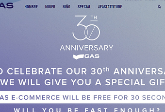 30 segundos de infarto, a contra reloj, para adquirir gratis todos los artículos que te de tiempo. Suena bien verdad?Este miércoles a las 3 y media en punto comienza el reto en la web de la firma GAS, siguiendo con su lema: fast attitude! Los más rápidos podrán llenar su cesto con las prendas que quieran totalmente gratis, si la web no se colapsa claro, y con motivo de la celebración del trigésimo aniversario de la firma.El próximo 14 de mayo el cronómetro correrá sin descanso, no olvidéis registraros y navegar por la web, han puesto a nuestra disposición un simulador! A entrenar!