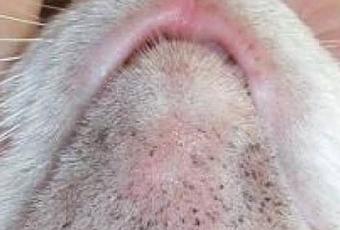 Es posible que si tu gato he sufrido de brotes de acné en reiteradas ocasiones, los folículos capilares pueden terminar lesionados gravemente, esto puede generar un tejido cicatrizal, lo que terminara por ocasionar la caída del pelo en el mentón dándole una apariencia de cuero.