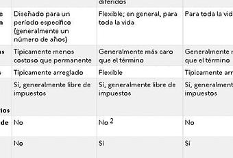 Normalmente, el seguro de vida se elige en función de las necesidades y los objetivos del propietario. El seguro de vida a término generalmente brinda protección por un período de tiempo determinado, mientras que el seguro permanente, como la vida completa y universal, brinda cobertura de por vida. Es importante tener en cuenta que los beneficios por muerte de todos los tipos de seguros de vida generalmente están libres de impuestos. 1
