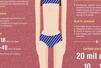 En la siguiente infografía te brindamos una información completa y resumida sobre lo que es la anorexia y el impacto que tiene en los jóvenes de hoy en día, siendo una de las enfermedades que más afectan esta población.