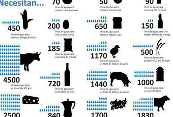 - La producción de un kilo de ternera requiere 16.000 litros de agua.