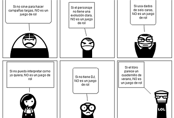 Aunque el título pueda dar a entenderlo, no voy a ponerme a soltar ideas, consignas y verdades escritas en mármol sobre qué es un juego de rol. Lo que voy a hacer es dejaros unos testimonios anónimos que he ido recogiendo en conversaciones, charlas de bar y coloquios postpartida (que suelen acabar en un bar) sobre si tal o cual juego es o no un juego de rol.En el fondo son sólo chascarrillos, pero me parecía divertido compartirlo