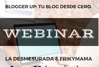 El jueves 26 de noviembre, esta desmesurada y su colega Ana de Frikymama, tienen pensado recibirte en un webinar -que yo prefiero llamar "clase abierta"- en los horarios que figuran en el anuncio que publicamos en la página del mismo: Blogger up.