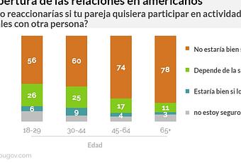 Otro estudio de YouGov en formato encuesta encontró que el 31% de las mujeres y el 38% de los hombres preferirían una relación no monógama. En general, los encuestados más jóvenes tenían más probabilidades de preferir la no monogamia que los de mayor edad.