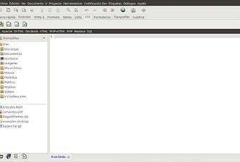 Como la mayoría de los entornos de programación de hoy en día Bluefish soporta una gran variedad de lenguajes, pero esta especializado en lenguajes orientados al diseño de paginas web. Es un programa bastante ligero, mas incluso que Geany. Como ya he dicho esta especializado en el diseño de paginas web y nos damos cuenta de ello según abrimos el programa una vez instalado. Cuando abrimos el programa podemos ver lo siguiente:
