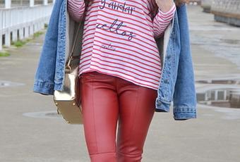 Mañana es San Valentín, el Día de los Enamorados, y porque el amor también es, en cierta manera, locura y porque cuando estamos enamorados vamos por la vida de otra manera, hoy os enseño un look con una camiseta de SANLA con un mensaje muy especial: QUE GUAPO ESTAR LOCOS Y ANDAR SUELTOS. La combiné de forma bastante sencilla siguiendo los colores de la camiseta, rojo y azul marino, con unos pantalones de polipiel rojos y zapatos y gorra azul. Como prenda de abrigo la cazadora oversize con borreguito que ya os enseñé en otro look y un bolso bowling dorado. Acompañé el look de la gargantilla media luna de BETTISIMA que ya me habéis visto, una pieza sencilla y que encaja a la perfección en este look. Feliz día de San Valentín! Camiseta:SANLAPantalón; ZARABolso: ZARAGargantilla: BETTISIMA (aquí)