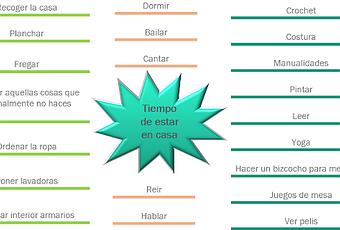 Hola Pecos@s!Hoy es un post un poquito diferente por la situación que estamos pasando con el corona virus.Vamos a sacar el lado positivo de estar en casa, y a continuación os dejo unas ideas para estar en casa bien entretenido (ver foto de arriba).¿Quién dijo aburrirse en casa?Eso nunca!!!Cuidaos mucho, donde estéis.