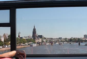 El recorrido del tour de Primus Linie es placentero (aunque ese día me tocaron unos inusuales 38º). Los barcos tienen servicio de bar, y además puedes alquilarlos privadamente para fiestas y eventos. No menos interesantes son los itinerarios que realizan en excursiones de un día, saliendo de Frankfurt, de los que yorecomendaría las incursiones en el Rhin, que comentaré más adelante, ya que yo recorrí ese río en un estupendo viaje desde Rüdesheim.