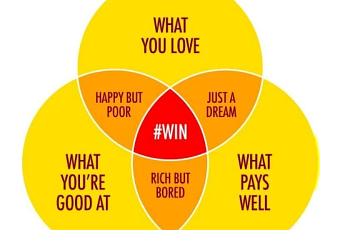- Aquello en lo que somos buenos y lo que nos da dinero: Podemos llegar a ganar mucho dinero, pero seguramente con una existencia aburrida. Incluso llevar una vida sin sentido, si no es que lo encontramos en otra actividad.