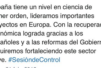 En estos días no deberá pasar desapercibido este tweet de Mariano Rajoy en el que habla de nuestro alto nivel científico... Presumió de ciencia en España durante la sesión de control del pasado miércoles... Fueron numerosas las respuestas que suscitó por parte del colectivo de científicos españoles que tuvieron que emigrar y trabajan en otros muchos países...