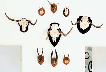 Podemos encontrar cabezas de ciervos en casi cada estancia de la casa, en paredes, cojines, cuadros, candelabros, figuras… Y en prácticamente todos los materiales, papel mache, cartón, cerámica, lana, foam… me gusta mucho como queda sea cual sea su ubicación…