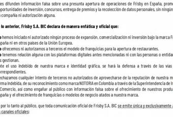La siguiente es una pequeña muestra de lo que las personas y compañías dicen en redes sociales de cara añ caso Frisby vs. Frisby España, ¿solidaridad?, ¿oportunismo?, ¿un poquito de ambas?.