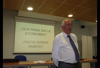 El conferenciante dio una serie de cifras sobre el plan enviado recientemente a Bruselas con previsiones de gastos e ingresos y resumiendo que no solo la deuda no disminuye sino que está aumentando, con lo que se agrava el problema, y que esta es cada vez más cara y detrae de los ingresos del Estado cantidades absolutamente insoportables para una economía saneada.