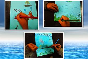 Los estudiantes del club de arte de sexto y séptimo año, crearon una aventura en el mar. Iniciaron dibujando a lápiz, el fondo marino con los peces y luego los personajes de la aventura.Para pintar utilizaron pinturas acuarelables, es decir que terminado el pintado se pasa un pincel humedecido y se hace un efecto de acuarela. Había que escoger la opción de dejar el cielo o el fondo marino del color de la cartulina, ya que es de color celeste. A continuación un video con los trabajos y voces de los estudiantes contándonos sobre su aventura: