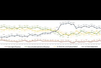 Observamos que la opción FED prevalece en la mayoría de los casos, igual que con las preferencias de la encuesta de enero, pero que donde en enero podía ganar la opción AUT, ahora ganaría IND. Dicho de otra manera: la opción FED como ganadora es muy estable aún con los cambios en las preferencias recogidos por las distintas encuestas, todo lo contrario de las otras opciones, que se presentan mucho más versátiles.