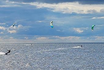 El lugar donde practicas kitesurf en los Outer Banks depende de dos factores principales: la dirección del viento y tu habilidad. La mayoría de los kiters eligen Pamlico Sound como su lugar preferido para montar. En la mayoría de las zonas de equitación el agua llega hasta la cintura, algunas zonas son incluso menos profundas y tienen un fondo arenoso. Tres de los lugares más populares que son adecuados tanto para principiantes como para expertos son el área de uso diurno de Salvo, The Washout y Kite Point.