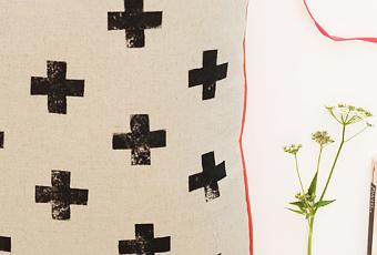 En un DIY de un cojín precioso, se ha usado la patata para hacer un tampón para las cruces negras, así que es un doble DIY!!