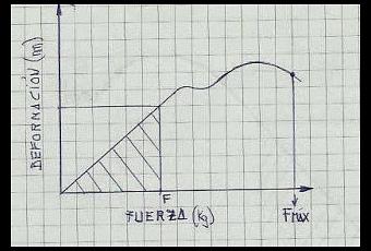 Ahora os voy a pedir que os creáis lo siguiente: la resiliencia (o el trabajo acumulado) es el área sombreada en el interior del diagrama; así, para distintos esfuerzos, tendremos distintas deformaciones, y el área sombreada será mayor o menor; si se nos aplica una fuerza mayor, acumulamos mayor resiliencia, y viceversa.