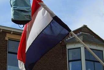 Hemos de empezar puntualizando el hecho de que sí, es normalísimo que una casa holandesa tenga en su fachada un poste para banderas. Dentro de las ciudades no es tan común (imagino que viviendo en un apartamentito en el cuarto piso no apetece demasiado ponerse a taladrar un palo en la pared), pero en lo que concierne a las casitas de apacible barrio de extrarradio, es rara la que no lo posee. A pesar de ello, y a pesar también de que el único modo que los holandeses conocen para llevarse a la boca cuadraditos de queso es pincharlos en una bandera en miniatura y de que en estas tierras no hay nada más patriótico que una pescadería, la manipulación de la ilustre bandera del reino de los Países Bajos tiene sus normas, no os vayáis a pensar. En teoría ha de izarse sólo durante el día del rey y otros cumpleaños de su regia familia, el día de la liberación y poco más (nada dice la ley sobre mundiales de fútbol). Y sin embargo en torno a la segunda semana de Junio, para disgusto de los más puretas (en los setenta se llegó a barajar si prohibir esta tendencia) Holanda entera se puebla de miles banderas que además vienen indefectiblemente complementadas con una mochila de escuela. Aún digo más, resulta que la mayoría de los hogares que tienen asta, que así se llaman estos postes en nuestro idioma, no la instalaron para conmemorar ninguna de las festividades oficiales sino que lo hicieron para prepararse para el momento en que era menester lucir la susodicha mochila. ¿Cuál es pues este momento?