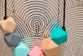 Más adelante, cuando tu bebé ya haya crecido un poco, podrás llevar un collar bonito y actual, que podrás llevar tranquila y dejar que tu bebé lo manipule mientras está en tus brazos. Tu bebé estará entretenido mientras lo amamantas, porteas o llevas en tus brazos.