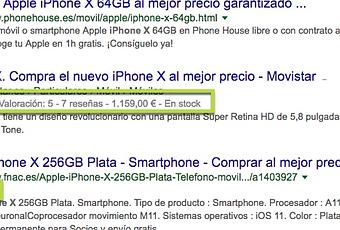 Aquí tienes el más claro ejemplo de fragmentos enriquecidos, el primer artículo no tiene nada, el segundo tiene varios como valoraciones, reseñas, precio y stock disponible y el tercero solo precio. ¿Cuál te llama más la atención, a parte de puedas comparar el precio antes de entrar en la web? ¿Qué empresa tiene más posibilidades de lograr una venta?