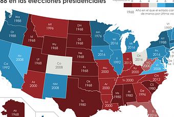No obstante, los swing states pueden ir cambiando en cada elección. Puede incluso que un estado considerado seguro para un partido empiece a estar disputado. Es el caso de Texas, un feudo republicano en el que las encuestas auguran un resultado ajustado en las elecciones de 2020. Pero el ejemplo paradigmático de swing state es Ohio: en las doce elecciones desde 1972 ha votado siempre por el candidato que acabó ganando, siete por el candidato republicano y cinco por el demócrata. Con Florida ocurre algo parecido: ningún candidato ha conseguido ser presidente sin ganar en este estado en las últimas doce elecciones, con la excepción de las de 1992.