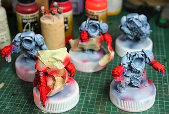 En este momento son varias las figuras que tengo cerca de la mesa de trabajo. Aunque son varias les estoy dando prioridad a los 5 exterminadores de los Lobos Espaciales de la caja de Stormclaw. Es mi primera escuadra de exterminadores de los Lobos Espaciales que pinto y de momento estoy disfrutando con ella, tanto durante el montaje como con la pintura. Me gusta el tono gris azulado de los hijos de Russ. De momento casi todo el trabajo ha sido de aerógrafo y no demasiado complicado. Un poco de cinta de enmascarar, un poco de maskol y poco más. No se si esta semana estarán terminados pero en ello estoy centrado.
