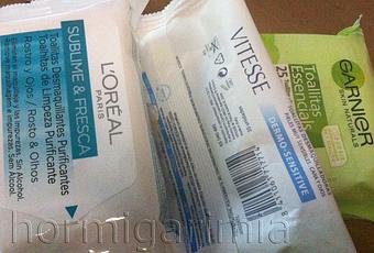 Toallitas de Vitesse: Las compré hace tiempo ya. No me gustaron nada estas toallitas, me escocía mucho la cara en general y era hasta molesto. Tuve que tirarlas porque me iban fatal.