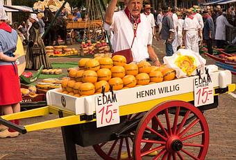 Durante los meses de verano todos los miércoles de julio y agosto podemos disfrutar de la recreación del mercado del queso en Edam.