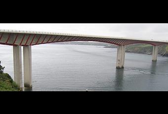 Desde el año 1987 un enorme puente conecta ambas comunidades autónomas pasando sobre la desembocadura del río Eo, con 612 metros de longitud. Se trata del conocido como «Puente de los Santos», que cuenta con un tramo de la autovía A-8 del Cantábrico, así como paso para peatones por ambos lados del mismo. Tras la construcción del puente, Ribadeo promovió promovió un nuevo recorrido para el Camino del Norte de Santiago atravesando la construcción, haciendo que en ese punto se abriesen diferentes posibilidades, una por Ribadeo, y, otra por Vegadeo, siendo la primera de ellas la más habitual en la actualidad.