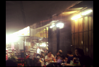 Esperando en un puesto de comida callejera a que se acabe la lluvia, que entra por los agujeros
