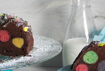 Desmolda a los 10 minutos. Deja que se enfríe totalmente y espolvorea con azúcar glass para definir más los recovecos del molde. Si te apetece, puedes decorar con grajeas de chocolate de los mismos colores que en el interior, para dar una pista de lo está por descubrir.