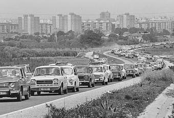 “Al principio la muchacha del Dauphine había insistido en llevar la cuenta del tiempo, aunque al ingeniero del Peugeot 404 le daba ya lo mismo“.…… “la muchacha del Dauphine le había dicho al ingeniero que le daba lo mismo llegar más tarde a París pero que se quejaba por principio, porque le parecía un atropello someter a millares de personas a un régimen de caravana de camellos”…… ” A veces llegaba un extranjero, alguien que se deslizaba entre los autos viniendo desde el otro lado de la pista o desde la filas exteriores de la derecha, y que traía alguna noticia probablemente falsa repetida de auto en auto a lo largo de calientes kilómetros”. Julio Cortázar (La autopista del Sur)