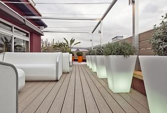 Superficie resistente a resbalones ideal para zonas de paso en zonas comunitarias , e idóneas para uso en hostelería como terrazas de bares ,restaurantes u hoteles el atractivo estampado de madera antideslizantes es resistente a resbalones cuando está húmedo o seco. La temperatura de la tarima siempre es agradable al tacto.